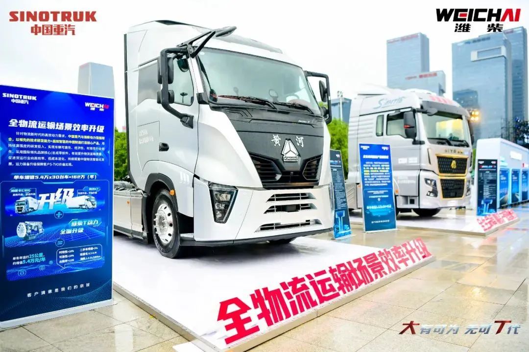 ▲中国重汽推出全球首款风阻系数0.37的全新一代高端黄河重卡。