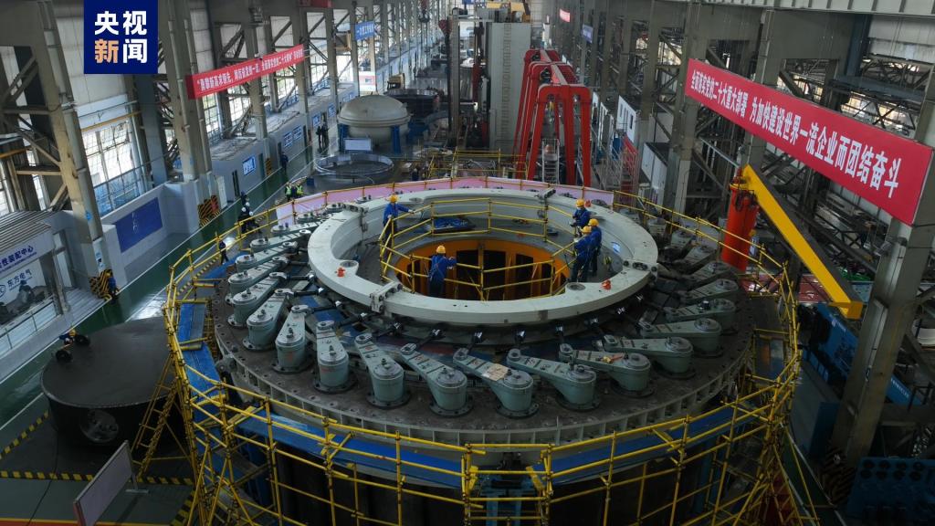 [央视新闻客户端]葛洲坝170兆瓦水电机组改造2号机导水机构在四川德阳成功下线