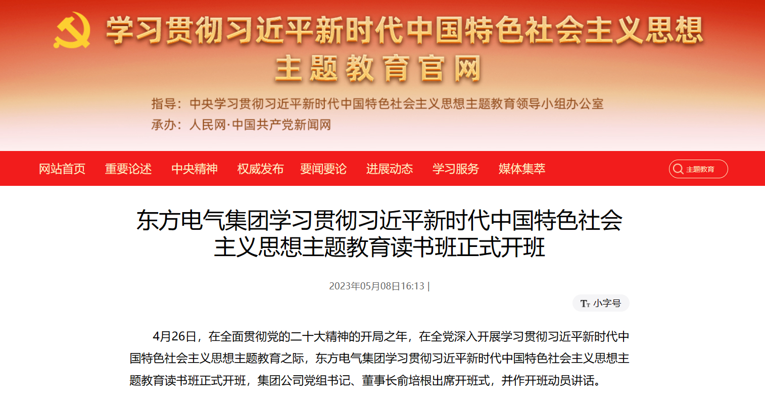 [主题教育官网]东方电气集团学习贯彻习近平新时代中国特色社会主义思想主题教育读书班正式开班