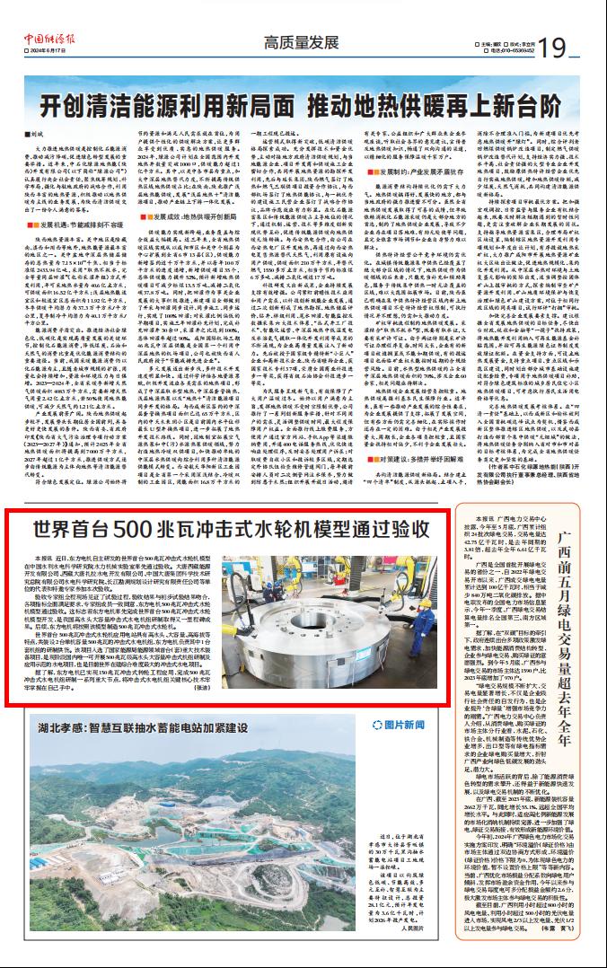 [中国能源报]世界首台500兆瓦冲击式水轮机模型通过验收