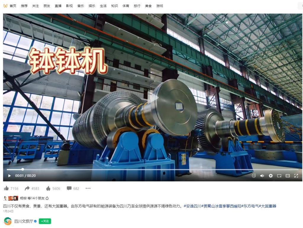 [四川文旅厅]四川不仅有美食、美景,还有大国重器。由东方电气研制的能源装备为四川乃至全球提供源源不竭绿色动力。